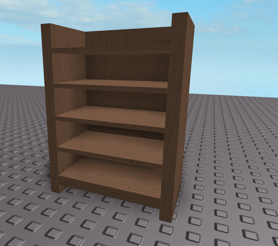 Long and seemingly pointless rant about how this is totally not a duplicate item aside, this shelve is nice and solid, with thick sides and fairly strong shelves. It also continues my newfound aesthetic of cutting out supports from the sides of objects to allow them to supports themselves.