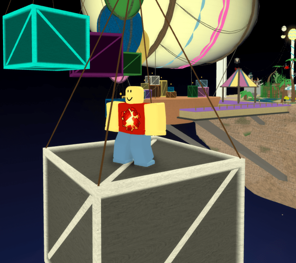 Continuing on through the map, the next issue was with these crates that were hung below floating balloons. The issues here is that the vertical and diagonal supports on the crates did now have proper wood grain. The grain on these segments should follow the orientation of the wood, so the diagonal pieces should have diagonal grain, and vertical segments should have vertical wood grain.