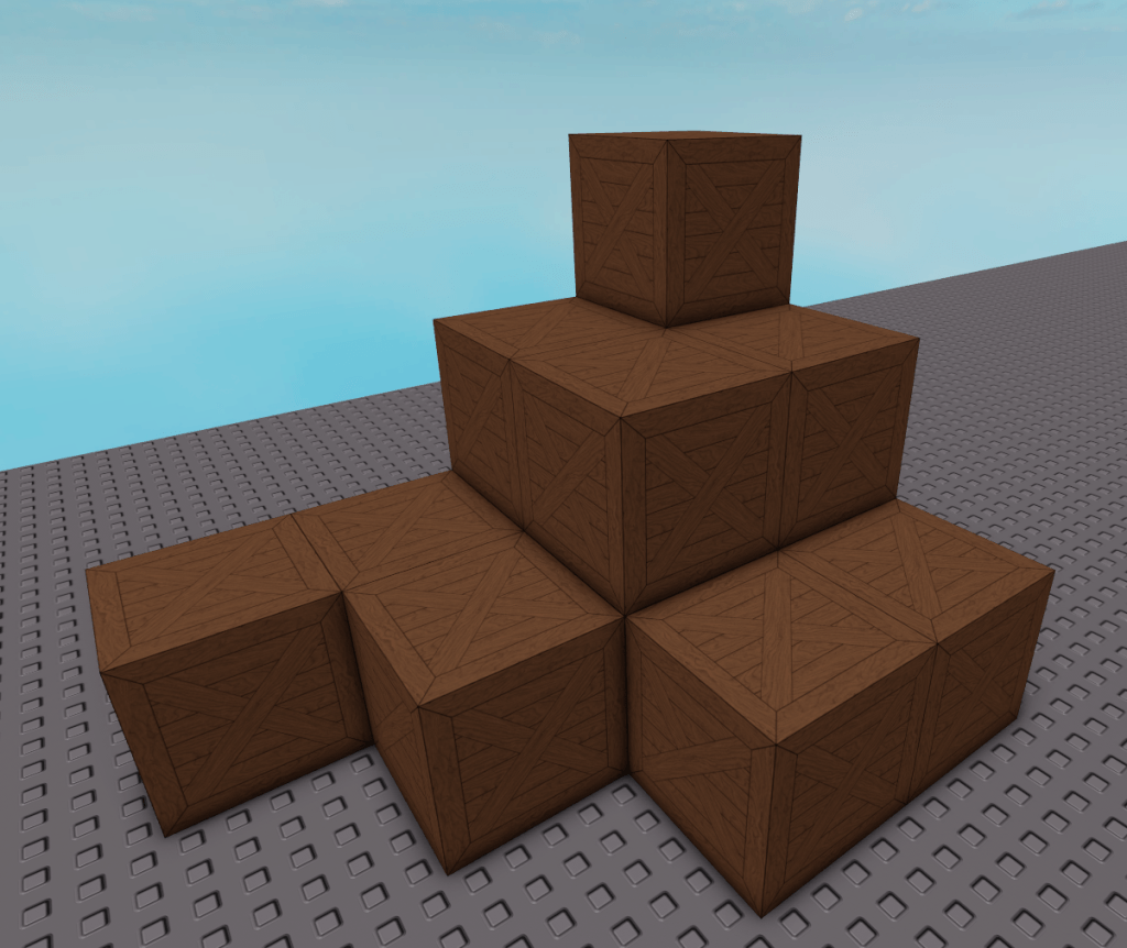 Or if you want, you can have a stack of crates and weld them together, and add the texture on top of the union. Granted I believe that it would still be better to have a dozen or so parts instead of a single union, I imagine there is a point where unioning a stake of crates together would see a performance improvement over a bunch of small crates. As an example, the next image is a single union.