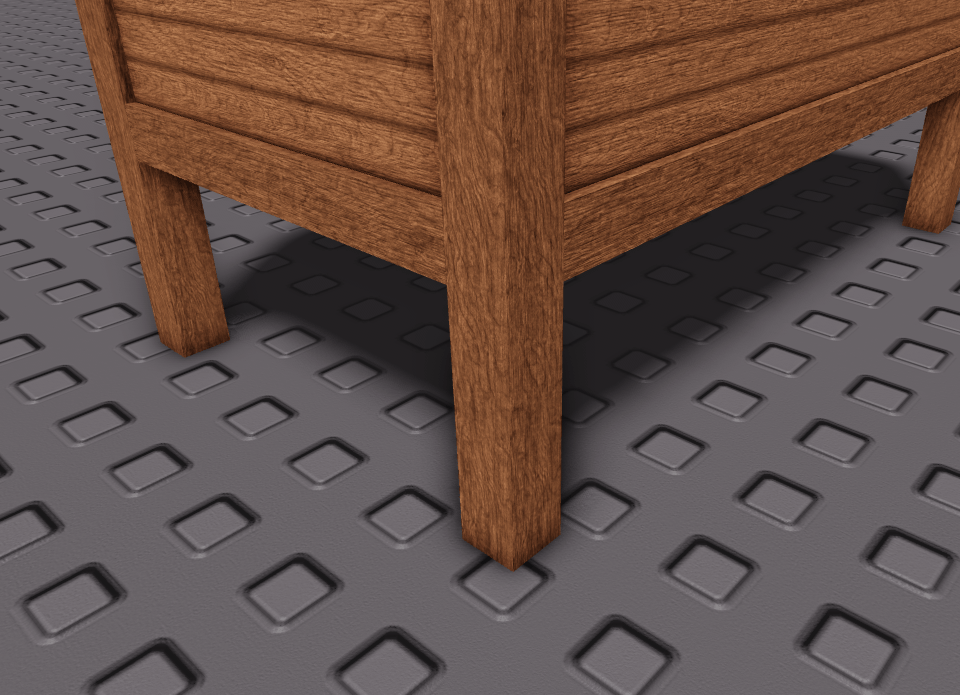 Right behind this tower of random blocks is a desk that has improper wood grain. While it technically isn’t a leg like all the above examples, the issue is basically the same with the vertical support pieces having horizontal wood grain instead of vertical grain. This is due to the entire part being a single union/mesh, but still, it looks bad and is physically impossible.