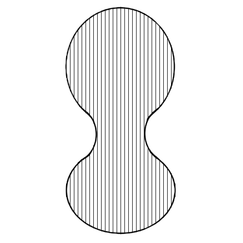 Because we aren’t just looking at the side grain of the chair, but the end grain. To start with, here is a basic diagram of a wooden sheet the chair was cut from, and the cutout of the chair, with a line to show the rough central point of the fold in the chair.