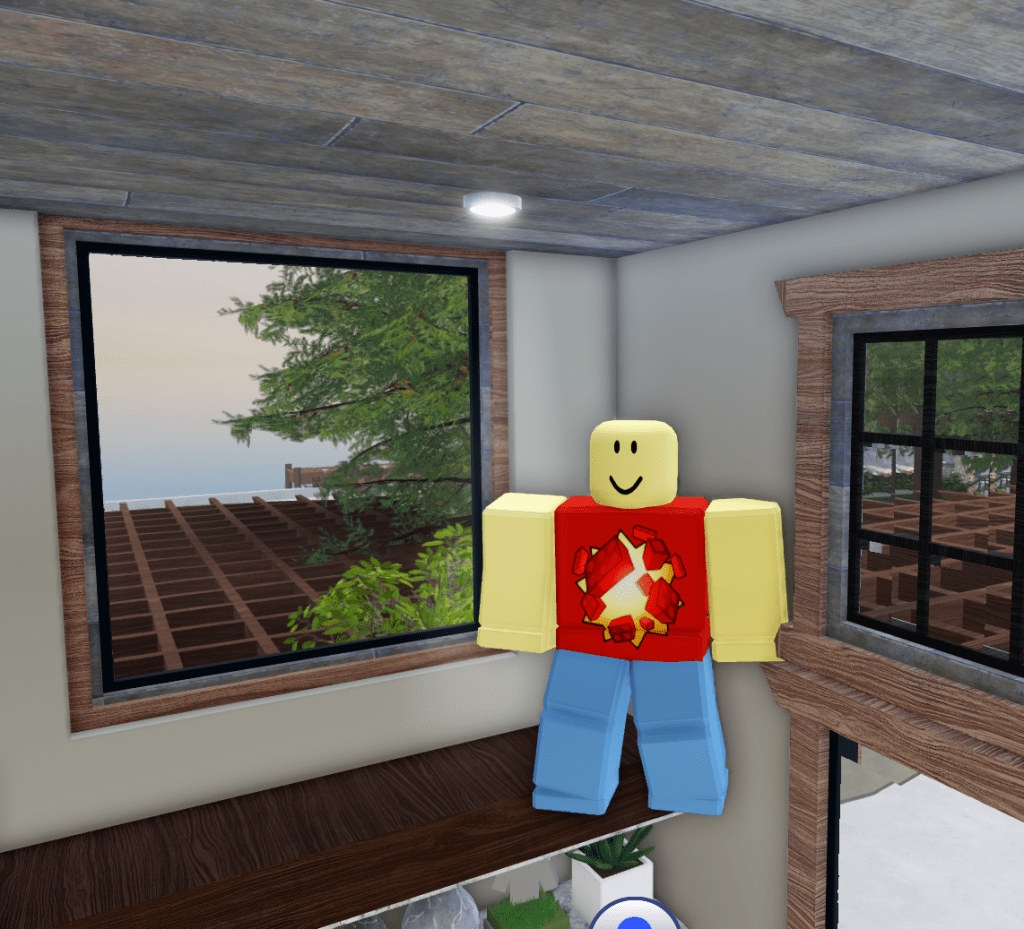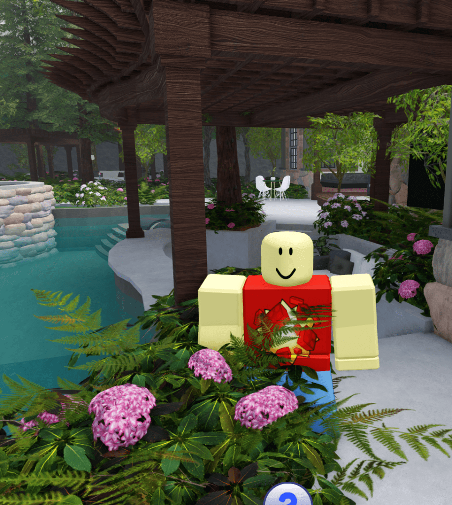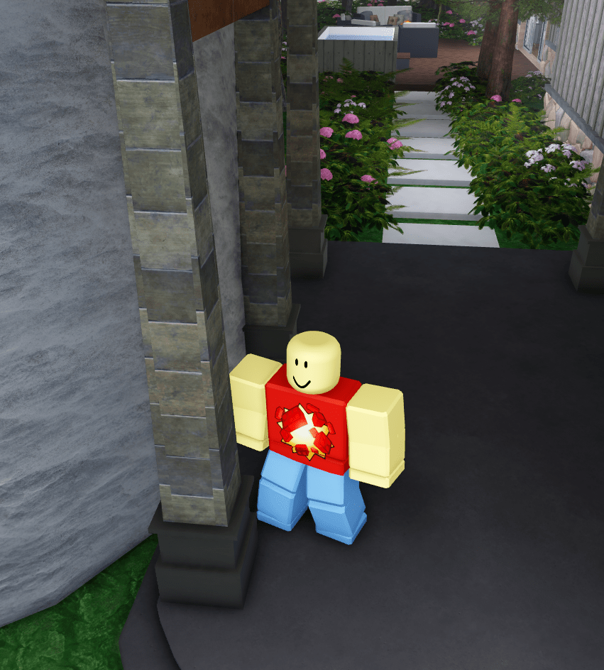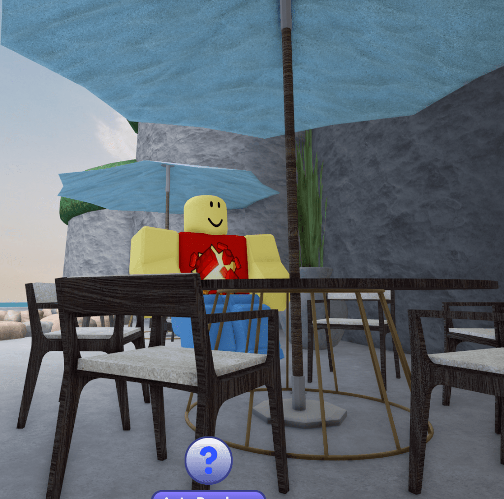 Just a bit few studs from the arch was this table and chair set. Like most chairs in this game, the chair legs have bad wood grain, only this time the chair arms also have bad wood grain. In addition, the umbrella in the middle of the table also has improper horizontal wood grain instead of vertical wood grain, and because default cylinders on Roblox basically can’t have bad wood grain, that means this is obviously either a mesh or a union that was screwed up.