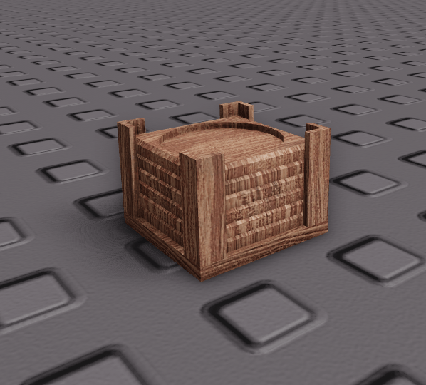 The coasters themselves have a small bevel on the top corner, and a slight indent in the top for cups to sit. The only bad thing about these coasters is that there isn’t a proper end grain for them, that would be on the top/bottom of the coasters, so they just look a bit odd without that end grain. Unforantetly, until Roblox adds some type of dedicated end grain for wood this is the best we will get.