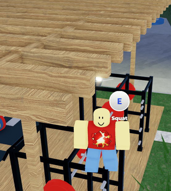 The first example of bad wood grain that I found in the game was right near the spawn in Olympic World presented by Visa, specifically the small weight lifting area. The issues here are on the pergola over the actually exercise area. The vertical supports have bad wood grain, and additionally the the top of rafters have improper wood grain, going front to back relative to me in the picture, instead of side to side like the front face of the rafters. From my years of experience of yelling at devs on Discord, I believe this is likely due to the pergola being made by duplicating bricks and resizing them to make the structure, rather than rotating the rafters so the grain faces the proper direction. This would be a quick fix with part flip, or an even quicker fix if they were properly rotated while building when duplicating the rafters.