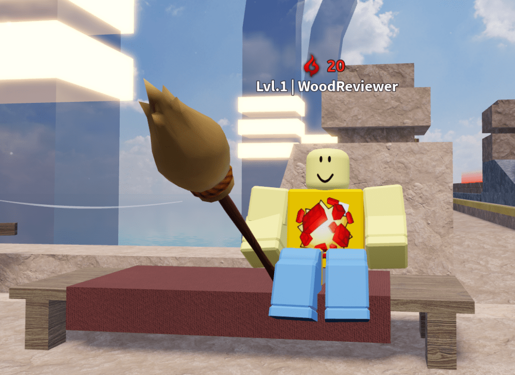 The adventure starts out us out in the spawn area where we are greeted with this helpful guide on the gameplay loop since the creator knows everyone is going to skip through the intro GUI and forget how to play the game. This sign has one major flaw as the vertical posts have bad wood grain.