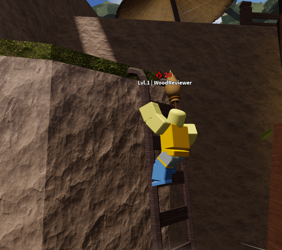 But speaking of bad horizontal wood grain, at the top of the ladder are these fence posts. It appears as if they use some type of custom endless wooden plank texture, which I love. What I don’t love is that the posts have this plank texture, and the texture is horizontal. What I hate even more is that the
