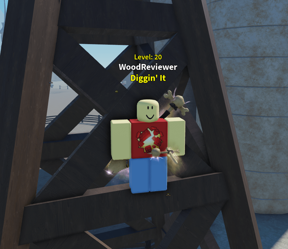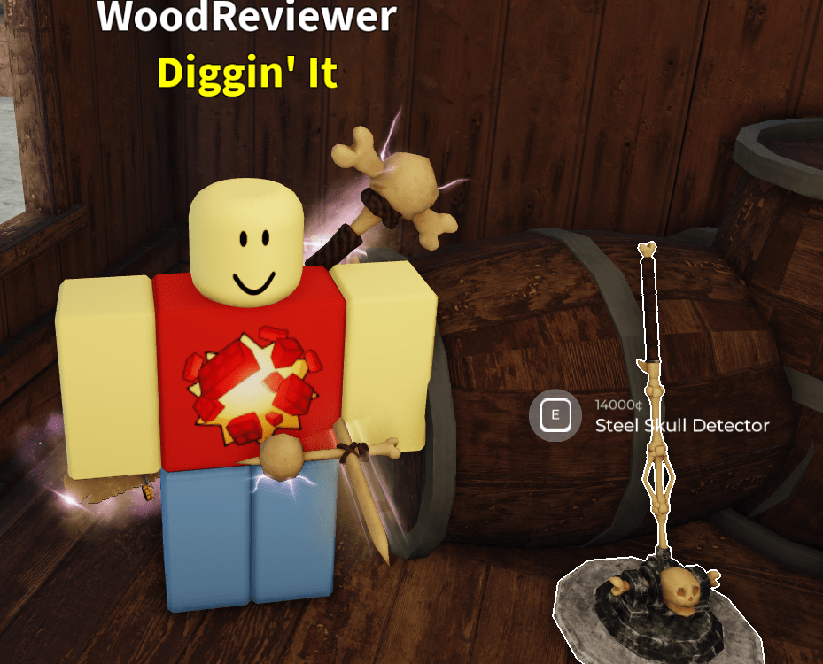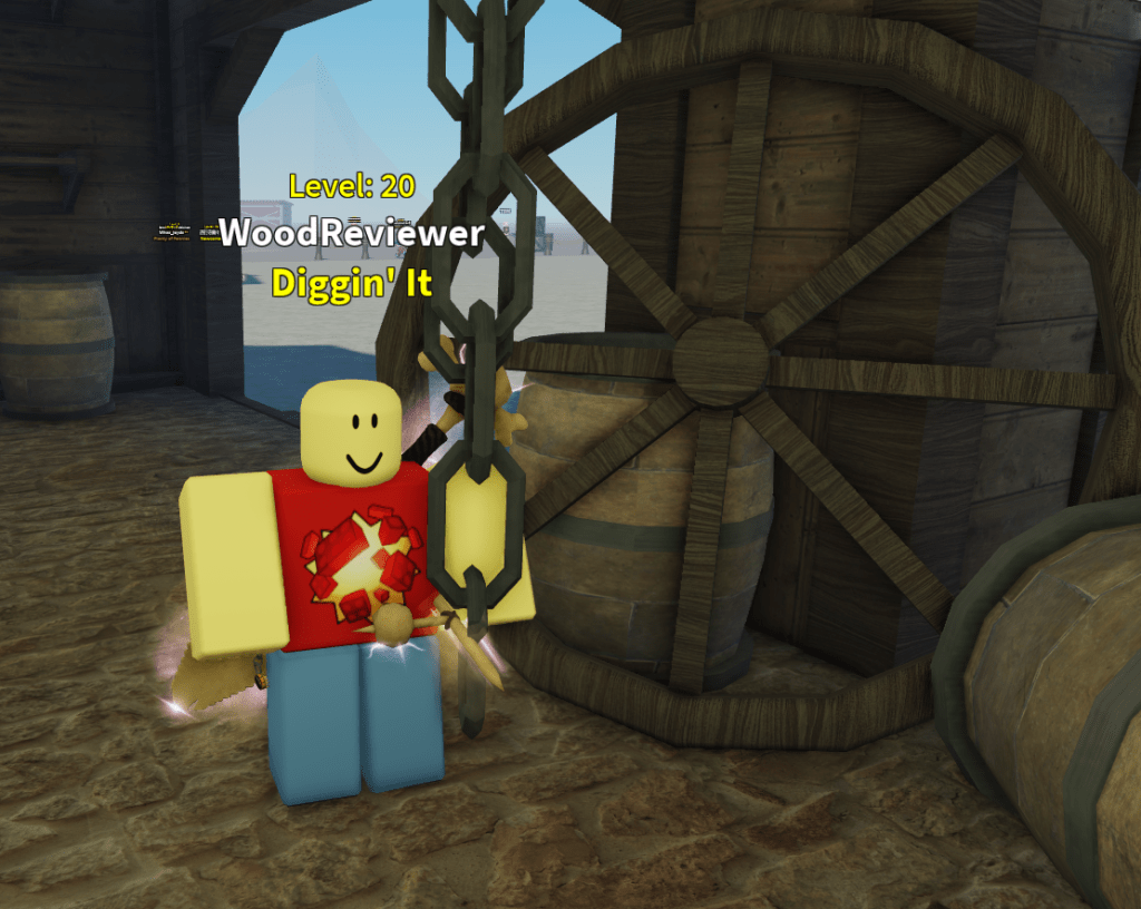 Moving on like 5 studs away from the crates is Temu Flamingo and this barrel that has bad wood grain. I have no idea where the trend that all barrels in Roblox games should have bad wood grain started, but over the last few months I’ve seen them everywhere. Is it probably because I’ve already done more reviews than I have all of last year? Probably. But I was still playing games last year, I was just bad at the actual writing reviews thing.