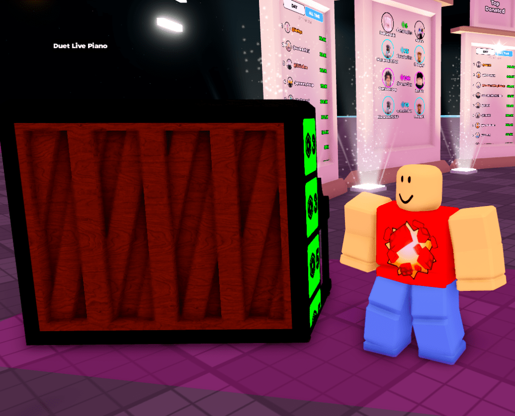 This game is basically pls donate but you donate to people playing pianos. And the entire map is a base plat with some signs and pianos, with the pianos having bad wood grain on the piano’s soundboard. The wood grain on these boards should follow the direction of the planks here.