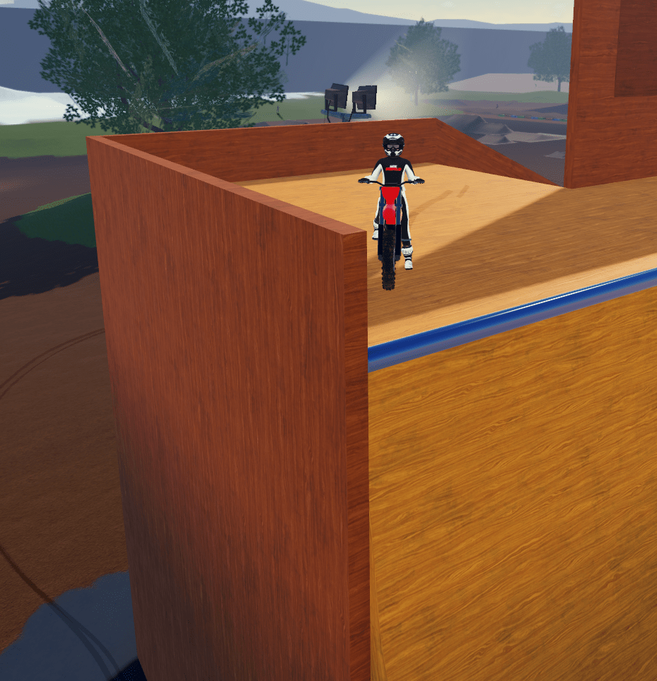 I have been fascinated with how different devs have made motocycles on Roblox ever since I first got my hands on the classic bikes made by Orange541 way back in 2008. Lovely as those bikes were, time has moved on a bit since then and now the newest generation of bikes are here, and unlike in 2008 they actually have physics and aren’t just a plane modified to not have enough lift to actually take off. Like I’ve said before, old Roblox was a crazy time. Biased as I may be, that doesn’t mean I will overlook the bad wood grain on the front face of this halfpipe.