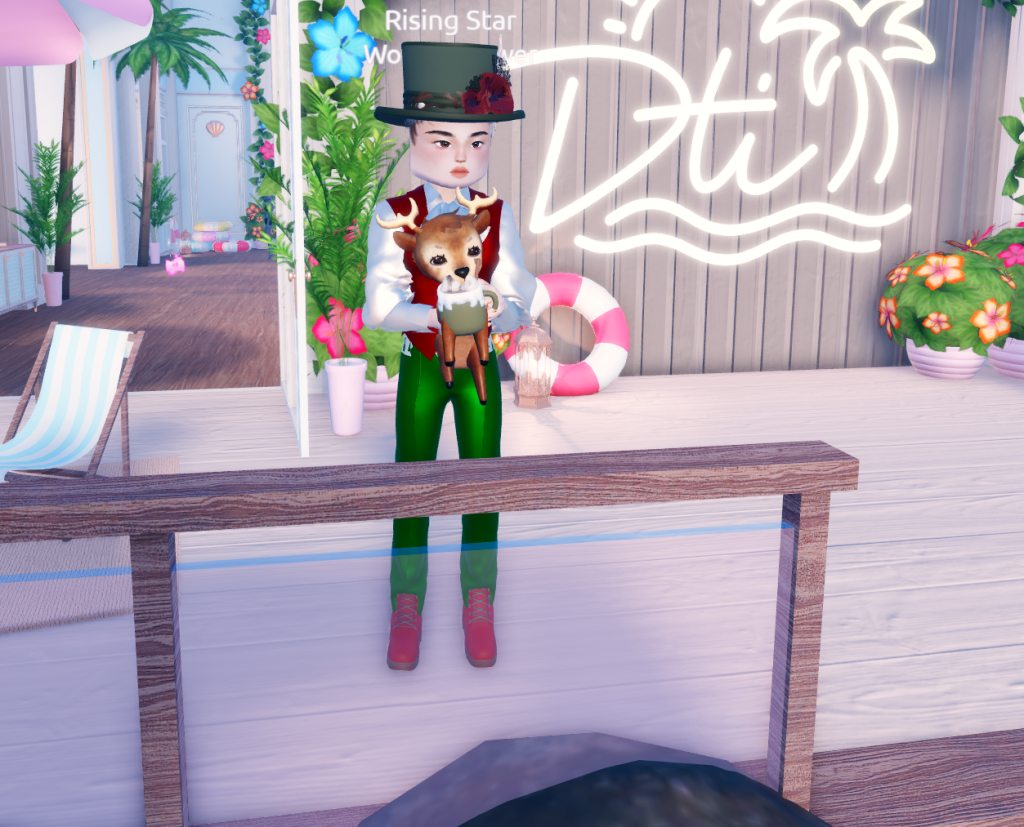 Dress to Impress used to be very impressive as despite the games popularity there was a time where it had no bad wood grain. Granted the entire game is like 4 rooms so that isn’t really impressive, but I have seen games where the entire game is a single chair and even then the chair has bad wood grain. Anyway with recent updates Dress to Impress continues to add more and more bad wood grain with the newest edition being this random railing and beach chair in the lobby that both feature bad wood grain on their supports.