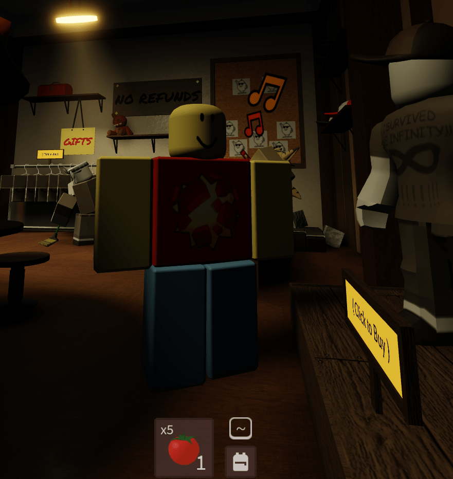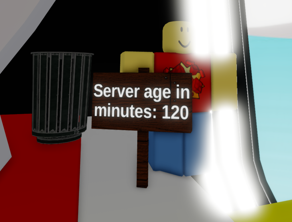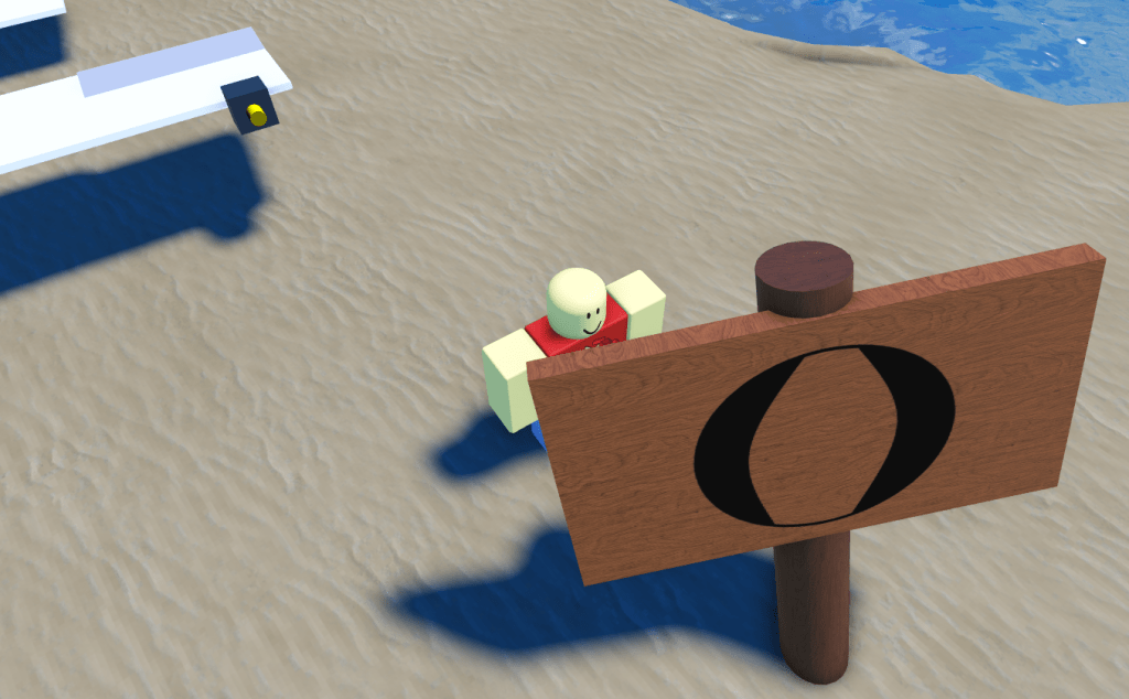 Returning for what I believe is the third time for a Roblox event, The Survival Game is a survival game. However, for the event the devs made a custom arena that you could teleport to and ignore the entire rest of the game so that I would have to go out of my way to find any of the normal suspects here. Unfortunately for the devs, this new sign they put near the arena has bad wood grain on the top face, so I didn’t even have to go looking for any bad wood grain, the game teleported me to it.