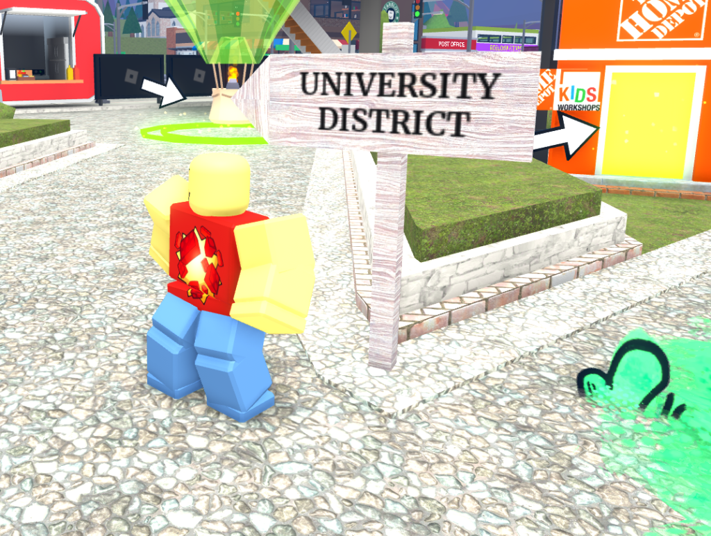 The last sub world in The Takeover, Strat University seems to mostly have games that don’t fit into any other subworld, although if I can give an opinion it makes no sense that the three tower defense games aren’t in the strategy world. The games aside, one thing that makes Strat University the most unique world is how many custom models it has. Take the Library for example, it has this couch that isn’t seen anywhere else in The Takeover the has bad wood grain on the sides.