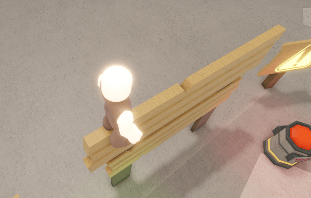 To help break up and organize this review I am going to group places by where they were located inside of the event game. This first of these places is the main hub world, The Clubhouse. As it lacks any actual games connected to it there isn’t anything to review besides for the world itself. Unfortunately for Twin Atlas, despite the small size of the Clubhouse I did find a few issues with it. The first one was with this wooden plank pieces scattered throughout the entire map.