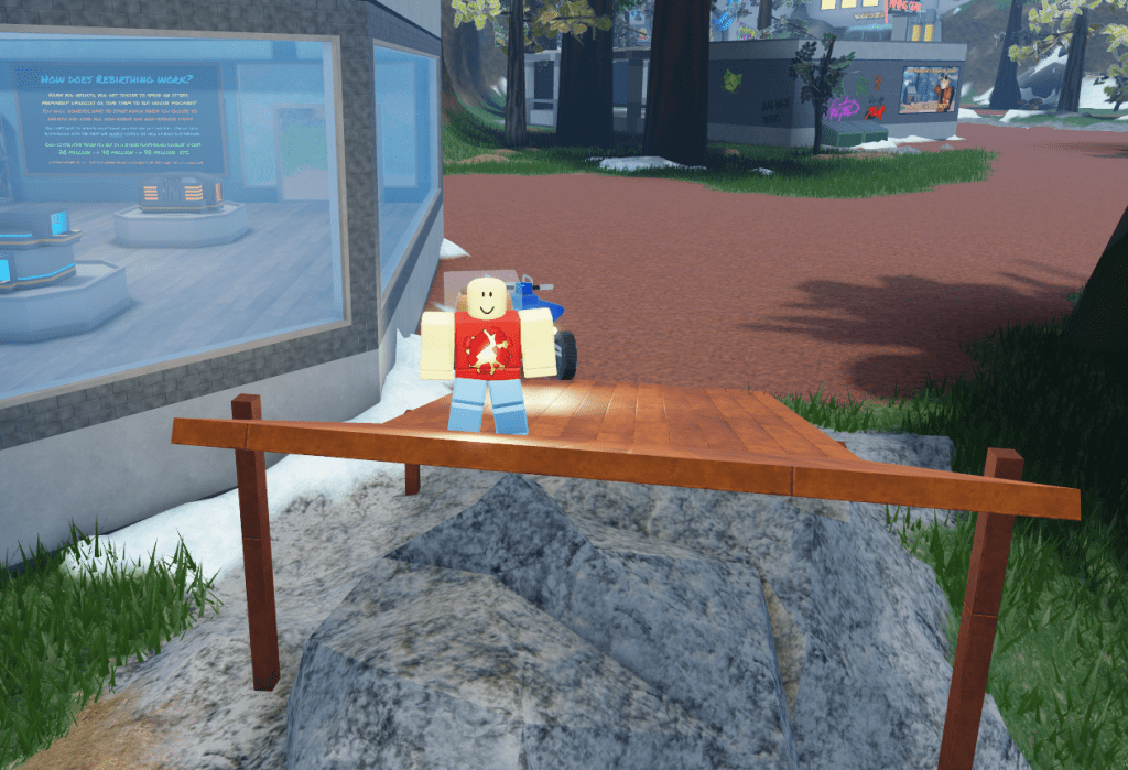 One of the most prolific devs from The Hatch, Platinum Falls is back with only a single game this time and there is plenty of bad wood grain to choose from as getting the badges required me to complete the entire game. There were many things that I could have chosen from, but I felt this ladder was the most fitting as it is made from basic cylinder that should have wood grain but they were altered as a mesh or as a CSG union and the result caused them to have bad wood grain. This is why I always have disclaimers saying that if there is a way to use bad wood grain some dev will find it.