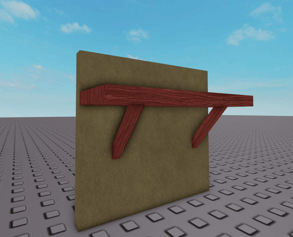 The main shelf itself was fine here, the issue was with the diagonal supports that have bad wood grain. While you could just use a regular brick for this, I unioned these supports to make them sit flush to the wall and not stick into it.